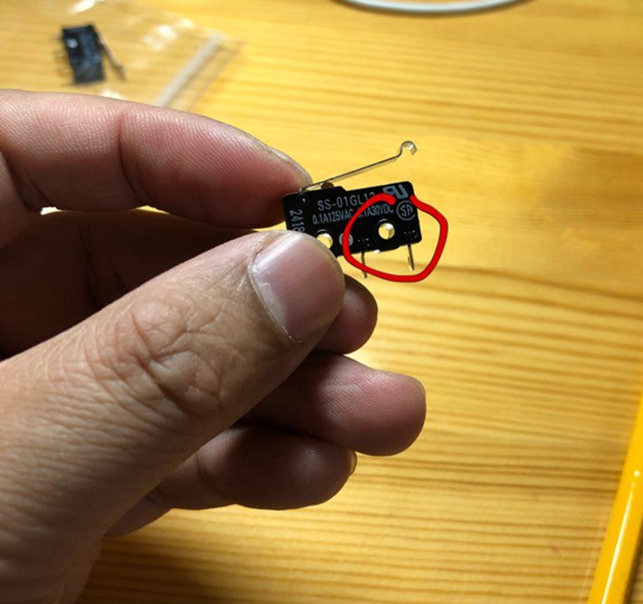 5、手上拿新的微動開關,似乎有兩個洞,卡住口的,有拆過微動開關的請指點