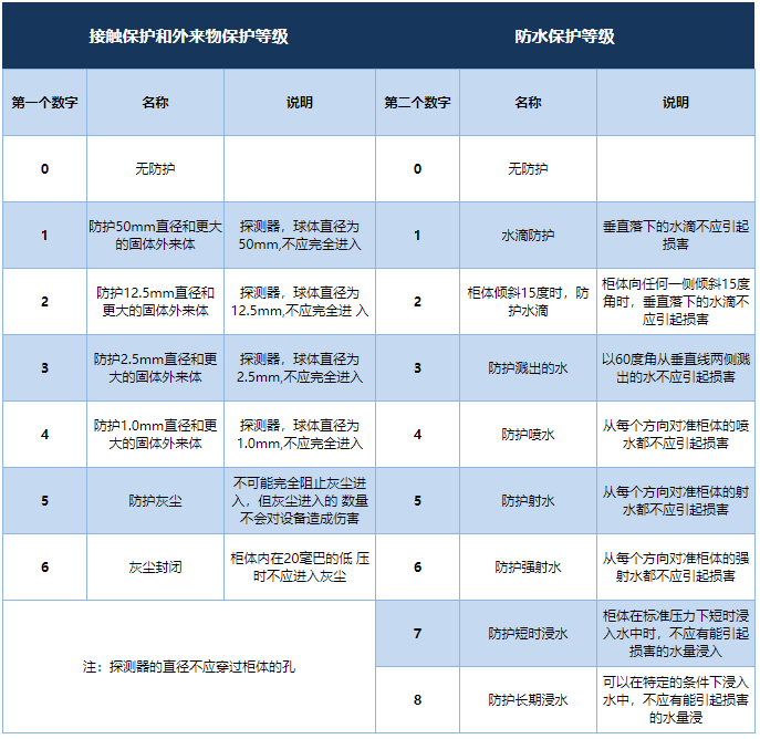防護等級多以IP后跟隨兩個數(shù)字來表述,數(shù)字用來明確防護的等級。