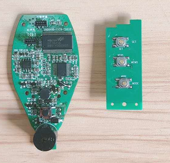 通過上面可以看出,體溫槍的結構不算復雜,上面的兩款按鍵開關就是我們東莞宏聚電子常用的輕觸開關,一款是6*6和一款是4*4的輕觸開關,6*6的用在掃描啟動手柄上,4*4用在功能選擇上面。